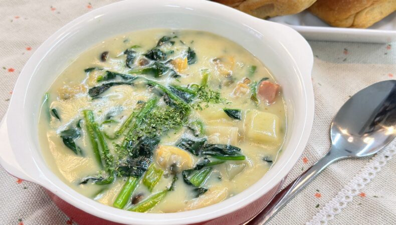 ほうれん草たっぷりクラムチャウダー